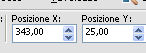e imposta Posizione X: 343,00 e Posizione Y: 25,00.