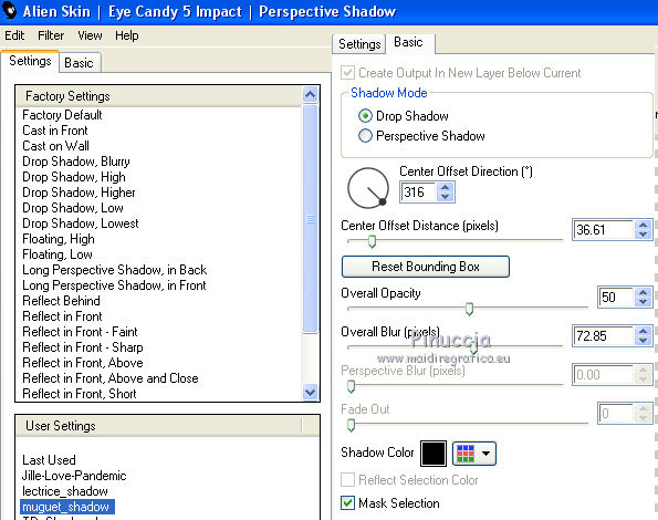 Effetti>Plugins>Alien Skin Eye Candy 5 Impact - Perspective Shadow
