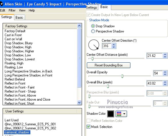 19. Effetti>Plugins>Alien skin Eye Candy 5 Impact - Perspective Shadow.