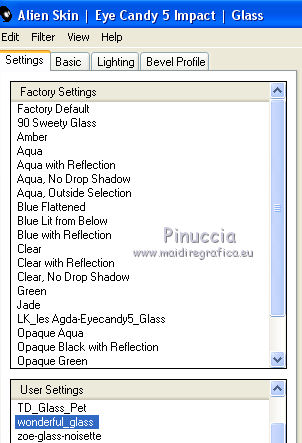 Effetti>Plugins>Alien Skin Eye Candy 5 Impact - Glass.