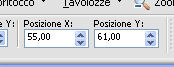e imposta Posizione X: 55,00 e Posizione Y: 61.00.
