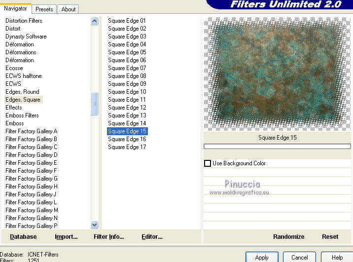 Effetti>Plugins>Filters Unlimited 2.0 - Edge Square - Square Edge 15
