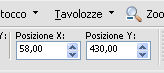 Imposta Posizione X: 58,00 e Posizione Y: 430,00.