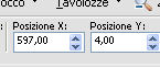 Imposta Posizione X: 597,00 e Posizione Y: 4,00.