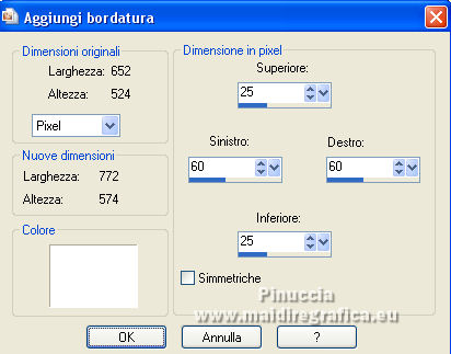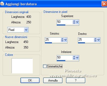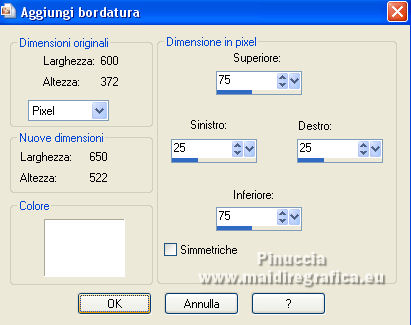 Immagine>Aggiungi bordatura, simmetriche non selezionato, colore bianco.