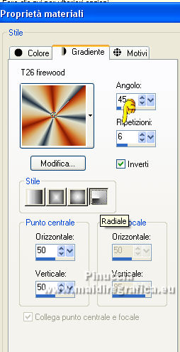 Passa il colore di primo piano a Gradiente e seleziona il gradiente T26-FireWood, stile Radiale.