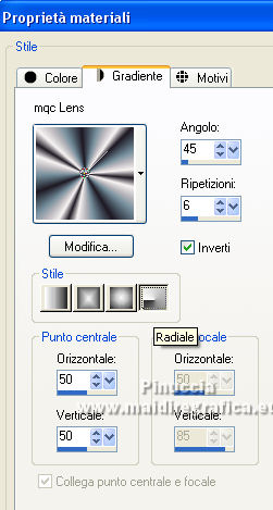 Passa il colore di sfondo a gradiente e seleziona il gradiente Mqc Lens, con gli stessi settaggi.