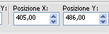 Imposta Posizione X: 405,00 e Posizione Y: 486,00.