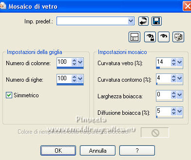 Effetti>Effetti di trama>Mosaico di vetro, con i settaggi precedenti.