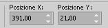 Imposta Posizione x: 391,00 e Posizione Y: 21