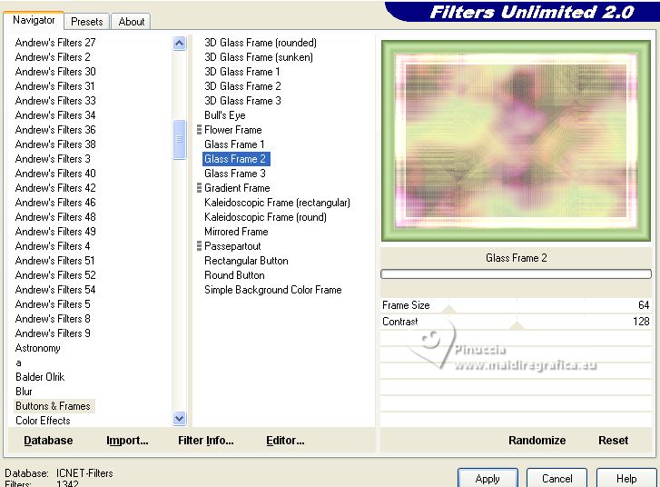 Effetti>Plugins>Filters Unlimited 2.0 - Button & Frames - Glass Frame 2.