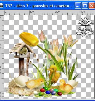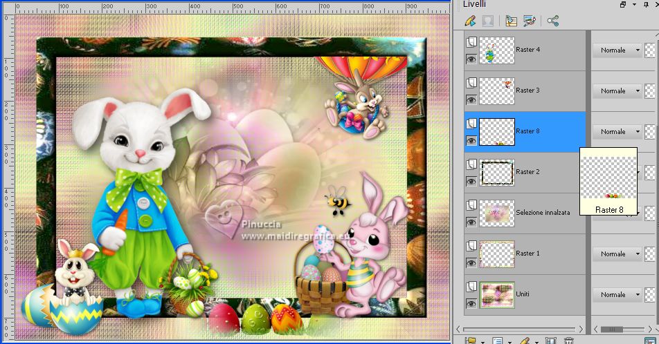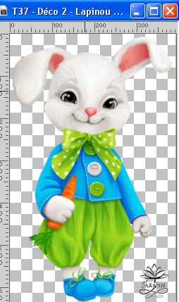 e cancella la parte del manico del cesto sul pollice del coniglio.