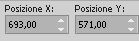 Imposta Posizione X: 693,00 e Posizione Y: 571,00.