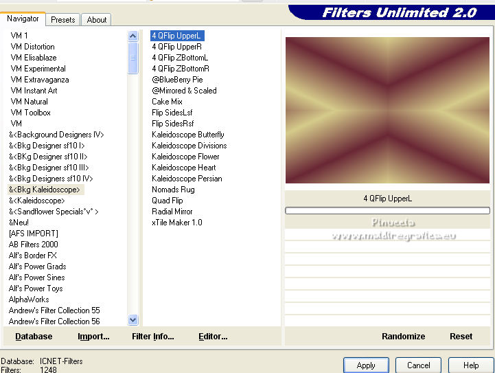 Effetti>Plugins>Filters Unlimited 2.0 - &<Bkg Kaleidoscope> - QFlip UpperL