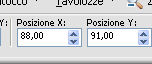 Imposta Posizione X: 88,00 e Posizione Y: 91,00.