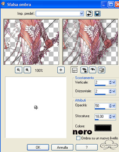 Effetti>Effetti 3d>Sfalsa ombra, con i settaggi precedenti.