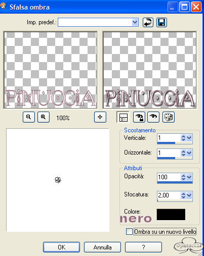 Effetti>Effetti 3D>Sfalsa ombra, con i seguenti settaggi, colore nero: