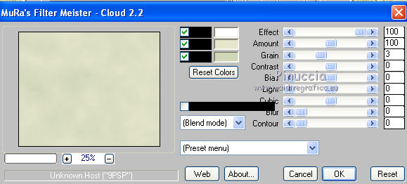 Premere successivamente il tasto Reset serve per cambiare casualmente (ragione per la quale il tuo risultato non potrà essere uguale al mio esempio, l'aspetto delle nuvole.