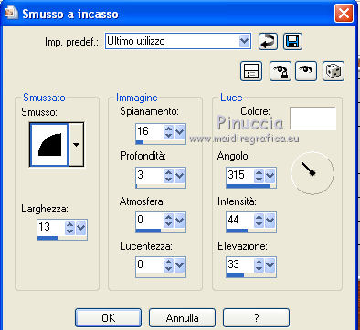 Effetti>Effetti 3D>Smusso a incasso, con i settaggi precedenti.