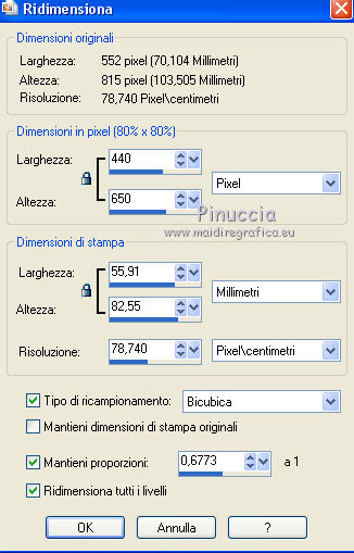 Immagine>Ridimensiona, a 650 pixels di altezza, tutti i livelli selezionato.