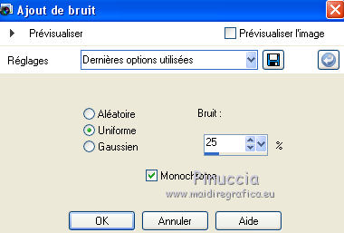 Réglage>Ajouter/Supprimer du bruit>Ajouter du bruit, comme précédemment.