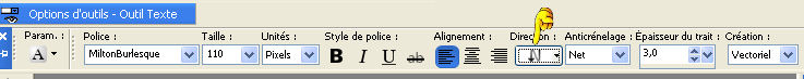 Activer l'outil Texte , font MiltonBurlesque, direction verticale