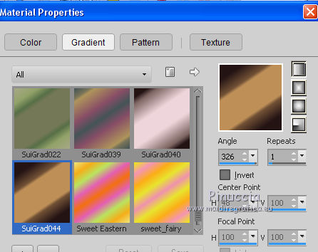 Set your foreground color to Gradient, and select the gradient SuiGrad044, style Linear