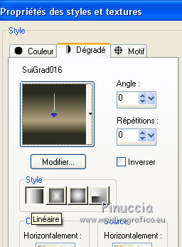 2. Placer en avant plan Dégradé, et sélectionner le dégradé SuiGrad16, style Linéaire.