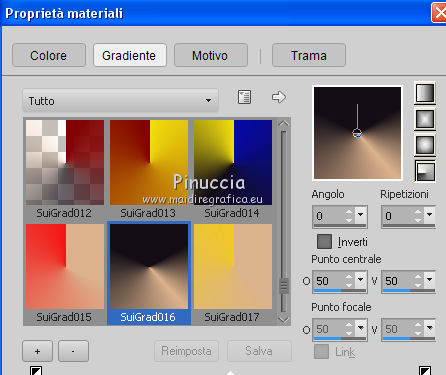 Passa il colore di primo piano a Gradiente e seleziona il gradiente SuiGrad016, stile Radiale