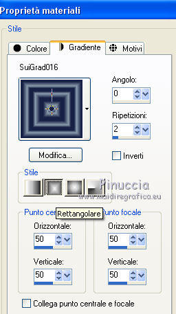 Passa il colore di primo piano a Gradiente, e seleziona il gradiente SuiGrad016, stile Rettangolare.
