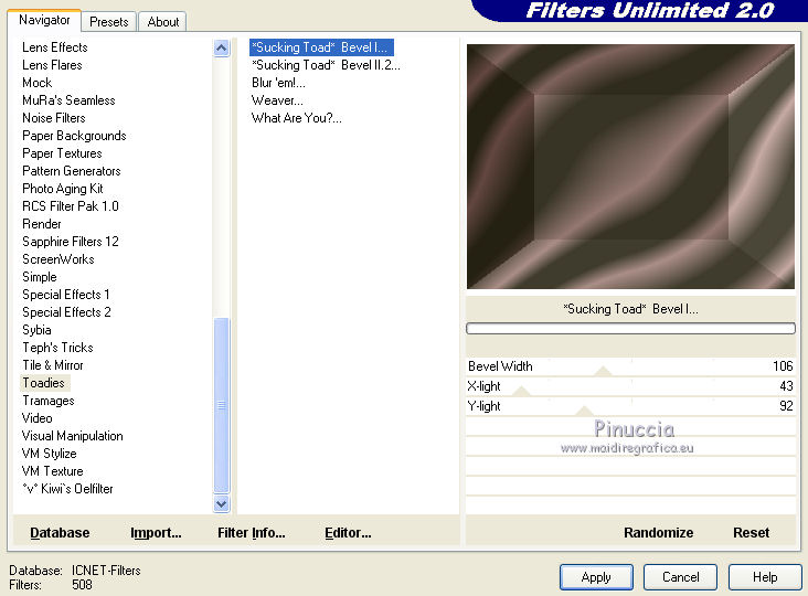 4. Effects>Plugins>Filters Unlimited 2.0 - Todies - Sucking Toad Bevel I.