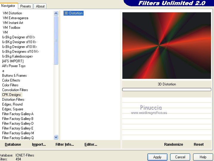5. Effects>Plugins>Filters Unlimited 2.0 - CPK Designs - 3D Distortion.