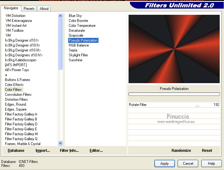 3. Effects>Plugins>Filters Unlimited 2.0 - Color Filters - Pseudo Polarization.