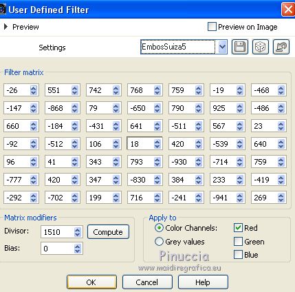 13. Effects>User Defined Filter - select the preset EmbosSuiza5 and ok.