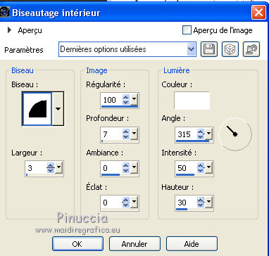13. Effets>Effets 3D>Biseautage intérieur, comme précédemment.