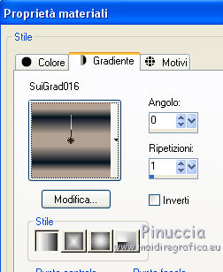 Passa il colore di primo piano a Gradiente, e seleziona il gradiente SuiGrad016, stile Lineare.
