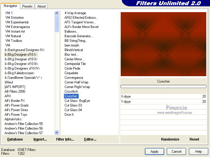4. Effetti>Plugins>Filters Unlimited 2.0 - &<Bkg Designer sf10I> - Cruncher