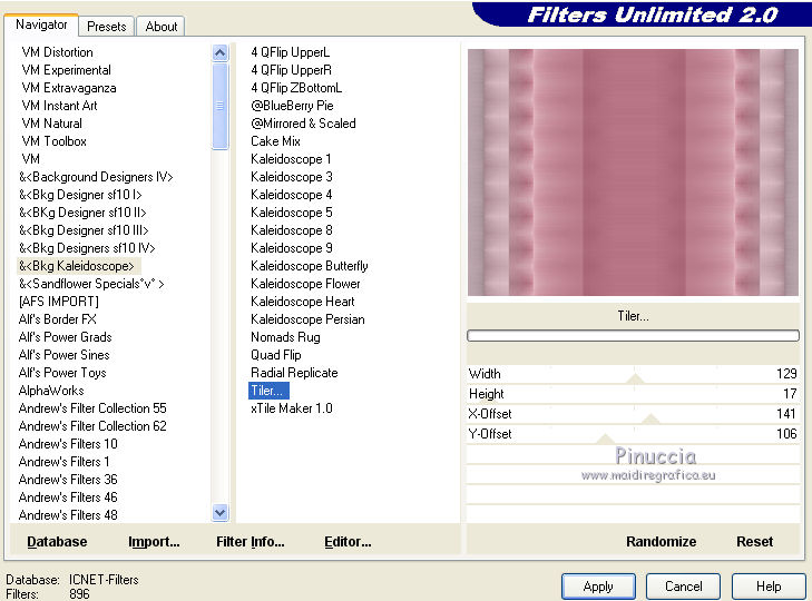 6. Effects>Plugins>Filters Unlimited 2.0 - &<Bkg Kaleidoscope> - Tiler.