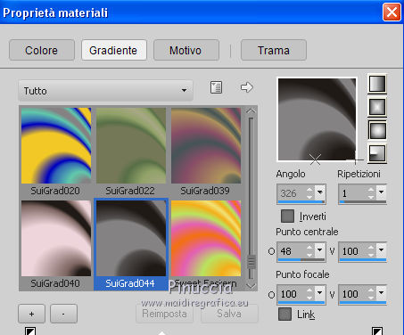 Passa il colore di primo piano a Gradiente e seleziona il gradiente SuiGrad44, stile Sprazzo di luce