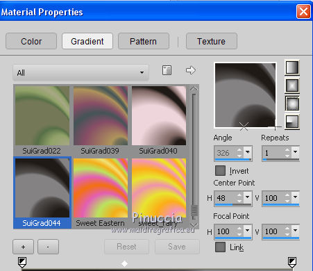 Set your foreground color to Gradient and select the gradient SuiGrad44, style Sunburst