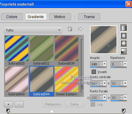 Passa il colore di primo piano a Gradiente e seleziona il gradiente SuiGrad044, stile Lineare