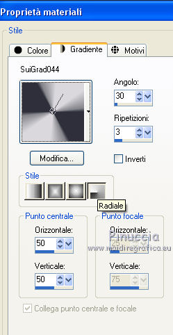 Passa il colore di primo piano a Gradiente e seleziona il gradiente SuiGrad044, stile Radiale.