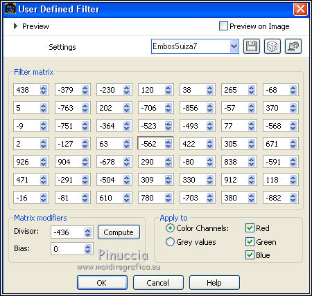 15. Effects>User Defined Effect - select the preset EmbosSuiza7 and ok.