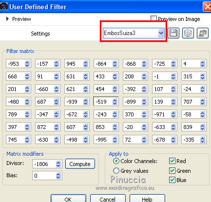 5. Effects>User Defined Filter - select the preset EmbosSuiza 3 and ok.
