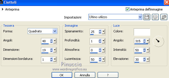 12. Effetti>Effetti di immagine>Motivo unico, con i settaggi precedenti.