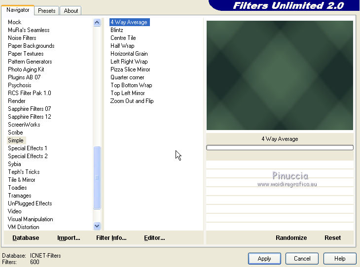 4. Effects>Plugins>Filters Unlimited 2.0 - Simple - 4 Way Average.