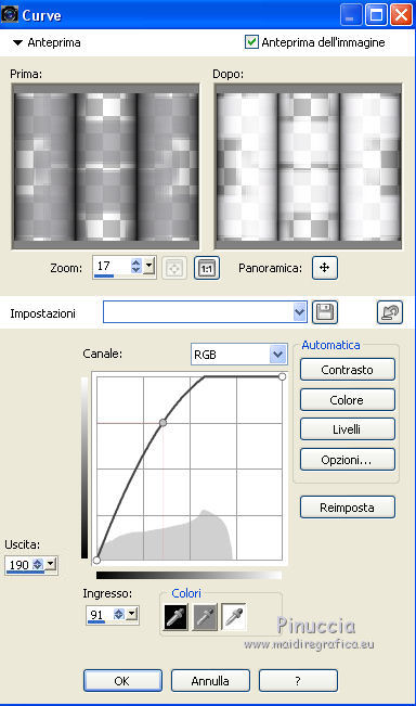 5. Regola>Aggiungi/Rimuovi disturbo>Aggiungi disturbo, con i settaggi precedenti.