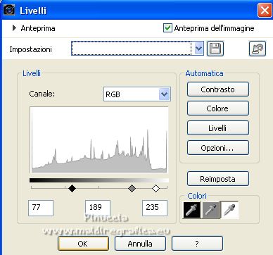 15. Regola>Luminosità e contrasto>Livelli.
