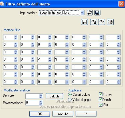 4. Effetti>Filtro definito dall'utente - seleziona il preset Edge_Enhance_More e ok.