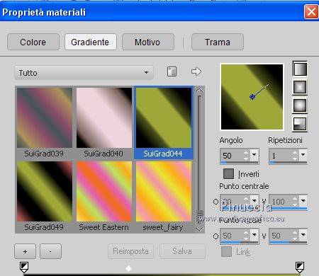 Passa il colore di primo piano a Gradiente e seleziona il gradiente Suigrad044, stile Lineare.
